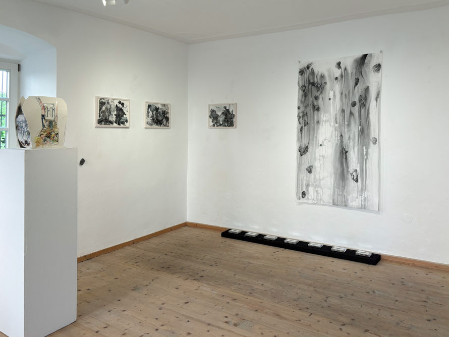 Inspiriert von Gesa Ziemers Konzept der Komplizenschaft thematisiert die Ausstellung einerseits künstlerische Kollaboration, andererseits das experimentelle Zusammenspiel. Im zentralen Ausstellungsraum sind von den Künstler*innen gemeinsam gestaltete Leporellos zu sehen sein, beispielhaft für das Ausstellungskonzept. Individuelle, grafische, malerische und collagierte Elemente dienen als Impuls für die weitere Gestaltung durch die anderen Künstler*innen. Dieser Arbeitsansatz fordert, unseren Blick zu erweitern, Bilder neu zu denken, sich auf die Arbeit anderer einzulassen und das „Miteinander“ zu suchen. Mit den Leporellos und deren Präsentation entstehen facettenreiche Skulpturen, die, ausgehend von Einzelpositionen, das Konzept der Interaktion repräsentieren, dabei entstehende Geschichten, inhaltliche und formale Zusammenhänge visualisieren. Die Autorin Carolina Schutti nimmt mit einem eigens entstandenen Text, der bei der EröPnung vorgetragen wird, Bezug auf die Struktur des Leporellos und die künstlerischen Intentionen der Teilnehmenden.
